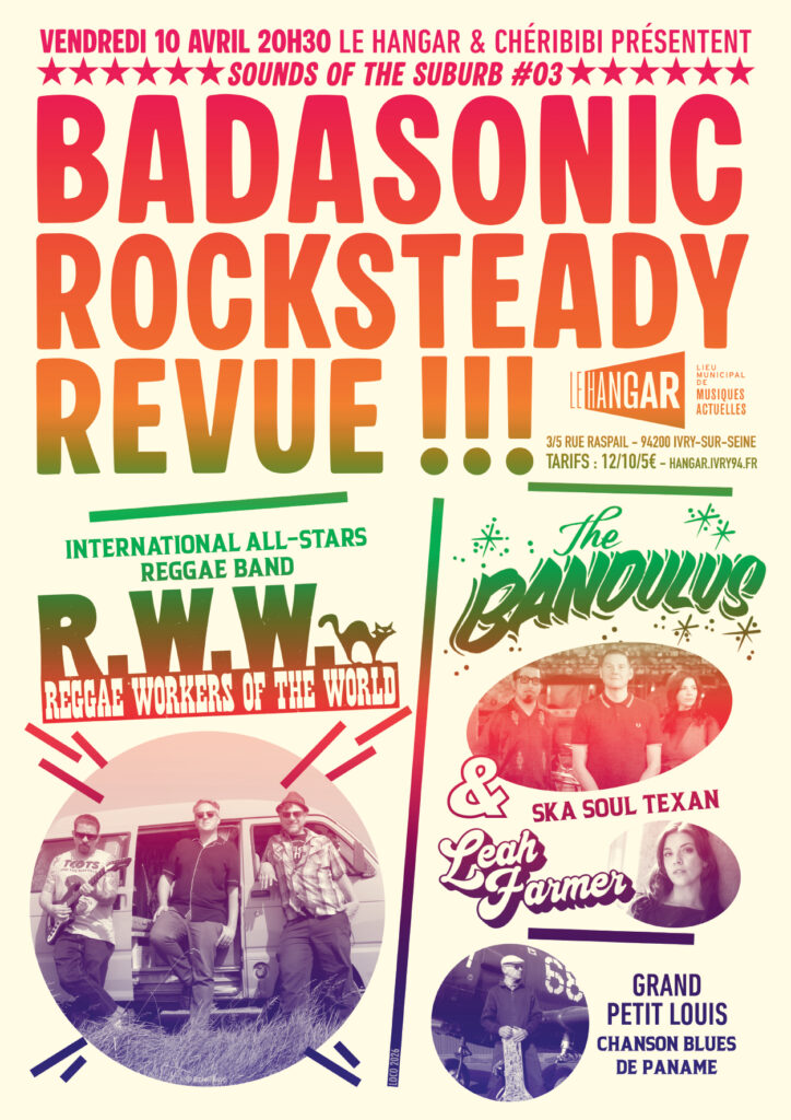 Et si tu t’obstines à retenir tes sous, nous ne t’inviterons pas au super concert qu’on organise ce 10 avril dans notre chère banlieue (toujours) rouge… Car vu les circonstances, on accueille des réfugiés états-uniens pour faire la fête à Ivry ! Tiens-toi bien, la Badasonic Rocksteady Revue est dans la place !